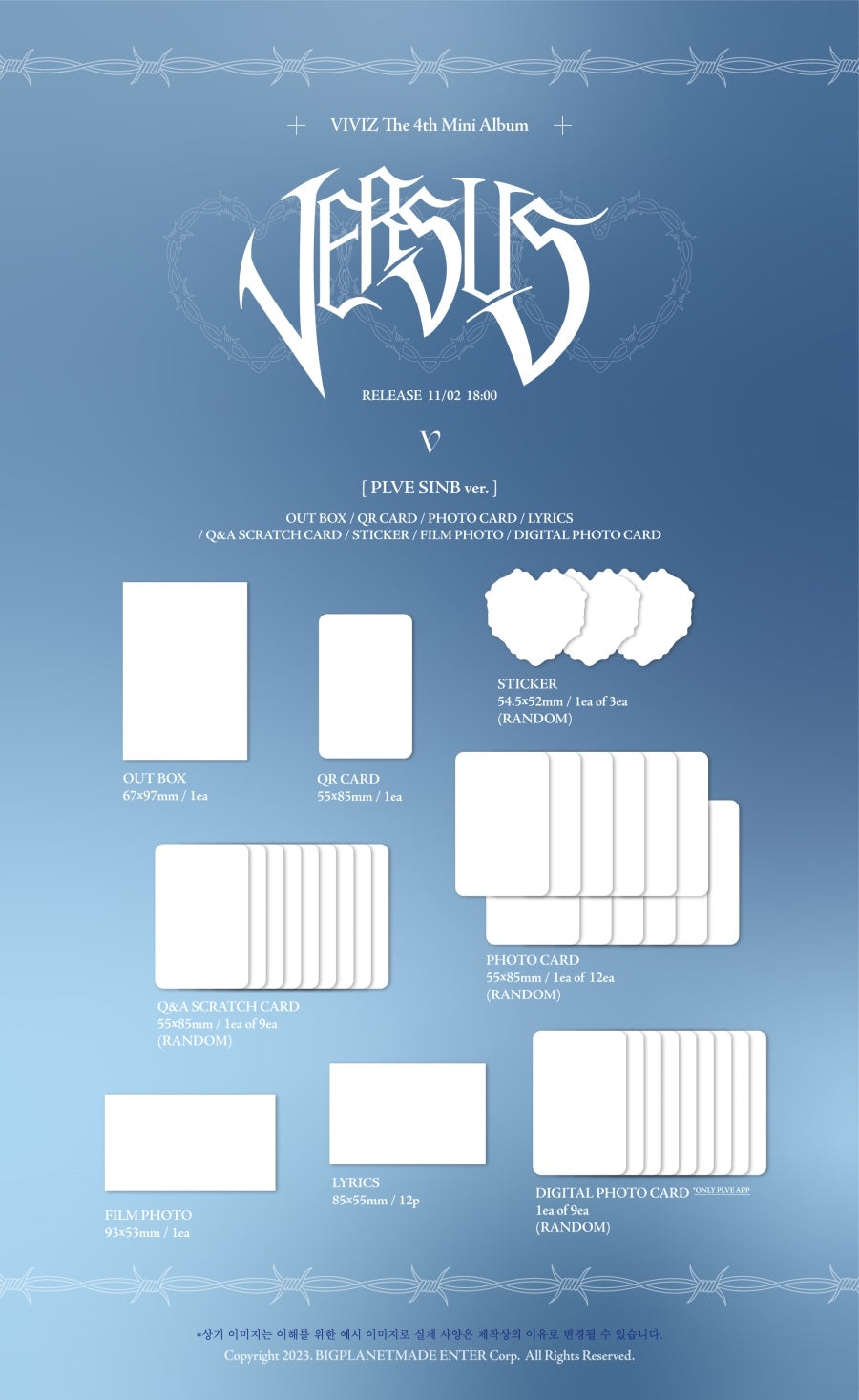 * Outbox + QR Card + Random Sticker + Random Q&A Scratch Card + Random Photocard + Film Photo + Lyrics (12 P)